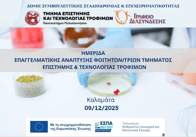 ΗΜΕΡΙΔΑ ΕΠΑΓΓΕΛΜΑΤΙΚΗΣ ΑΝΑΠΤΥΞΗΣ ΦΟΙΤΗΤΩΝ/ΤΡΙΩΝ ΤΜΗΜΑΤΟΣ ΕΠΙΣΤΗΜΗΣ & ΤΕΧΝΟΛΟΓΙΑΣ ΤΡΟΦΙΜΩΝ