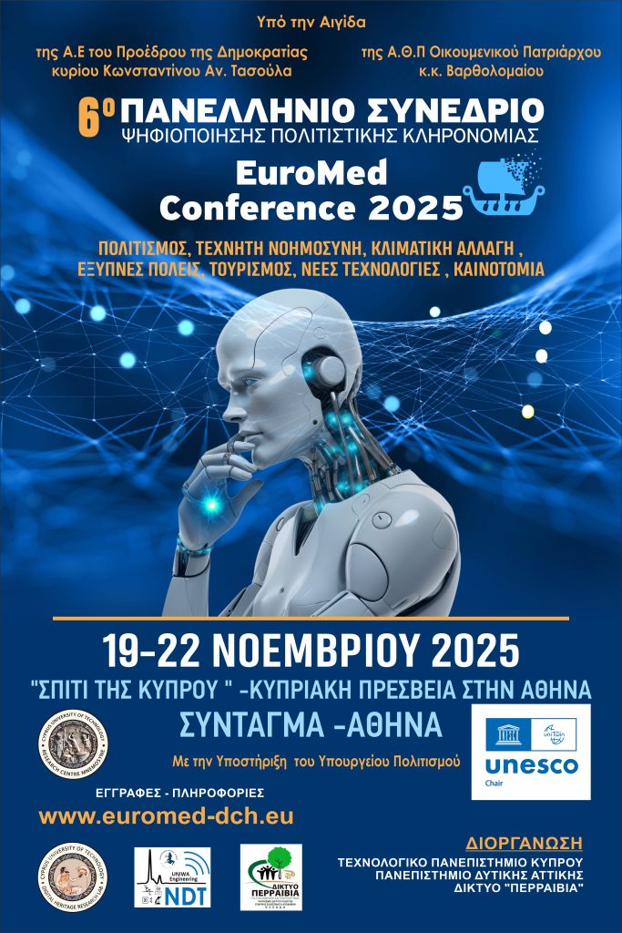 Ανακοινώνεται η διοργάνωση του 6ου ΠΑΝΕΛΛΗΝΙΟΥ ΣΥΝΕΔΡΙΟΥ ΨΗΦΙΟΠΟΙΗΣΗΣ ΠΟΛΙΤΙΣΤΙΚΗΣ ΚΛΗΡΟΝΟΜΙΑΣ – EuroMed 2025, που έχει θεσμοθετηθεί και διοργανώνεται στην Ελλάδα κάθε δύο (2) χρόνια.