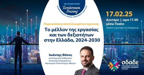 Πρόσκληση LS “Το μέλλον της εργασίας και των δεξιοτήτων στην Ελλάδα 2024-2023 – Δευτέρα 17/2/2025 17:00 μ.μ.