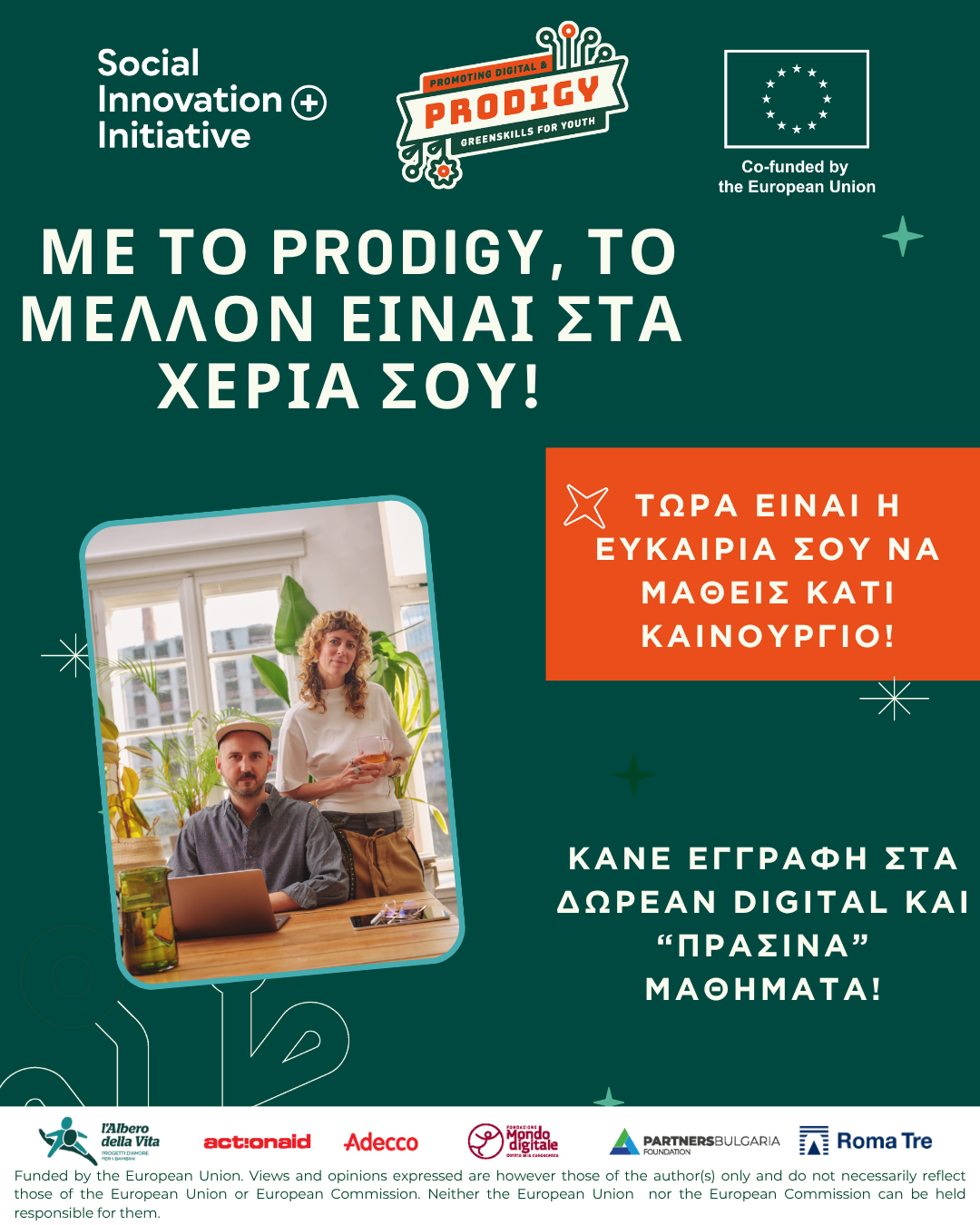 Το πρόγραμμα PRODIGY συγχρηματοδοτείται από το ESF+ Social Innovation+ και στην